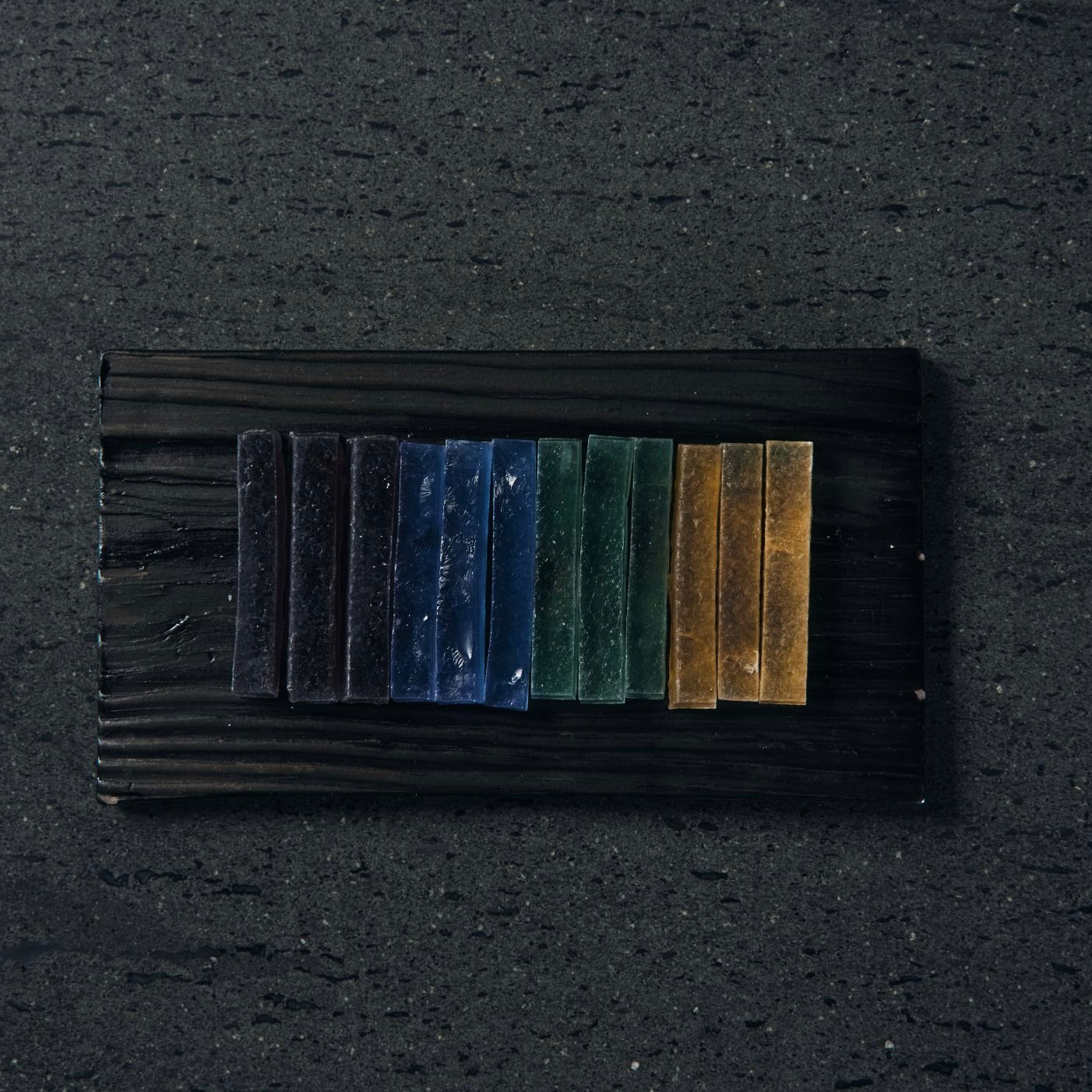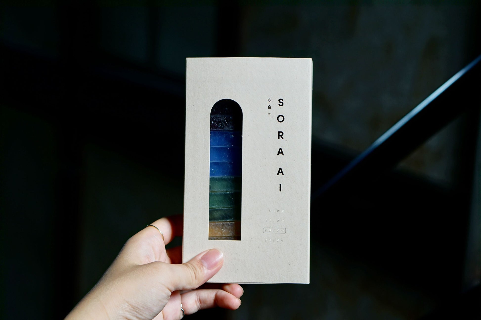 時間帯によって移り変わる空模様を、砂糖と寒天を原料にした日本の伝統的和菓子、「琥珀糖」で表現しました。