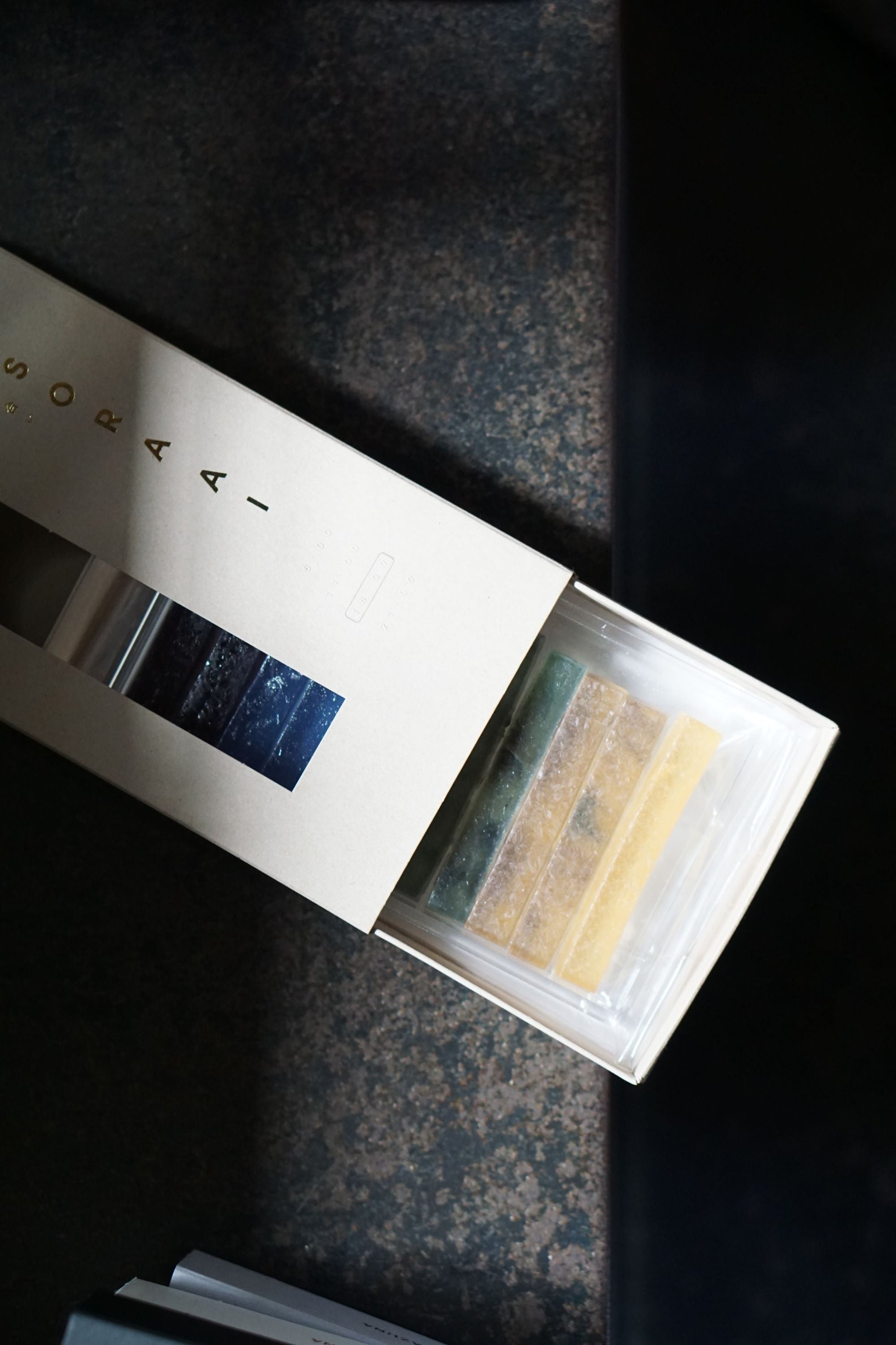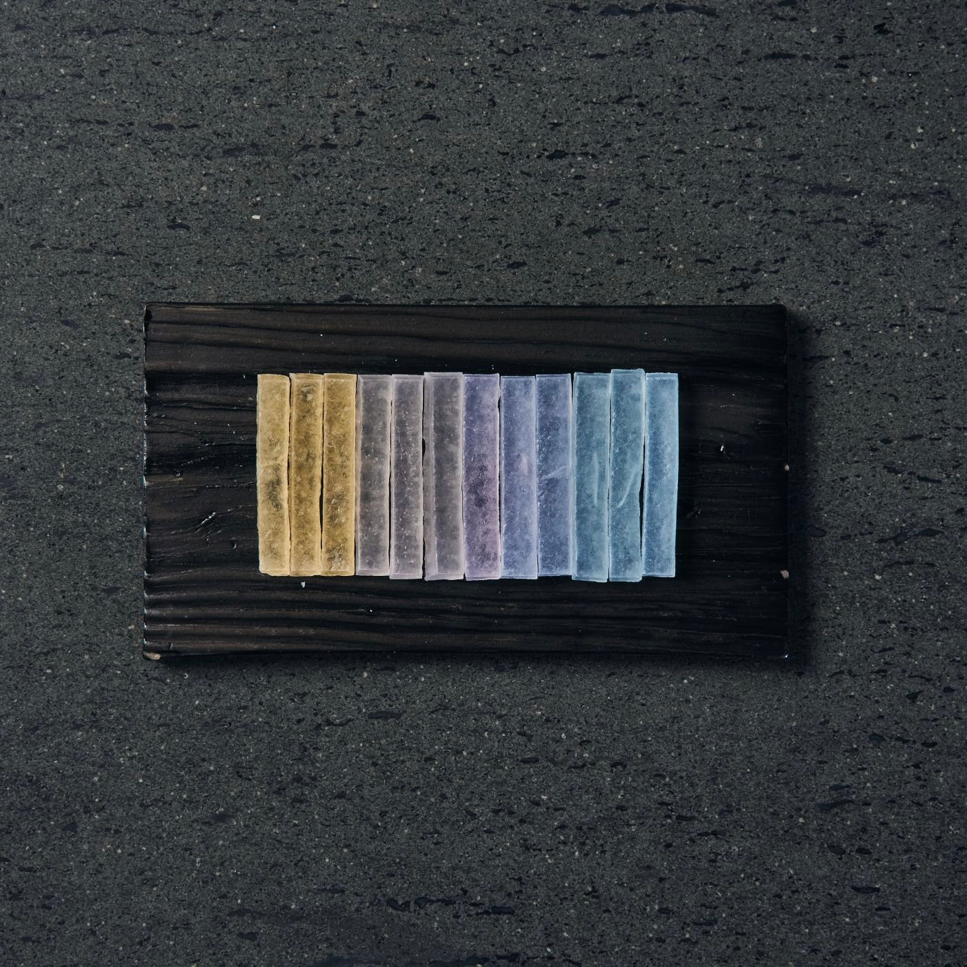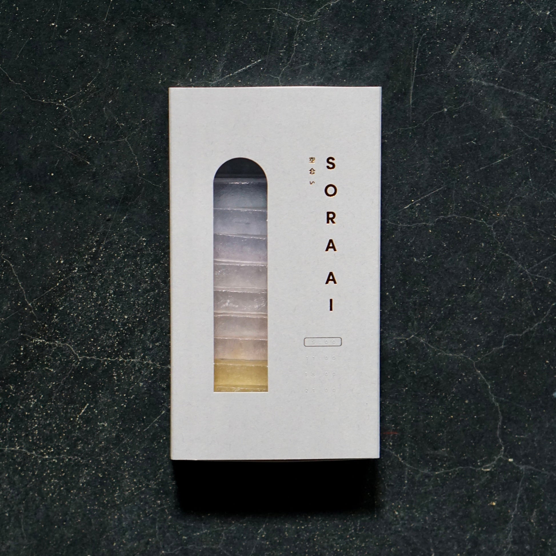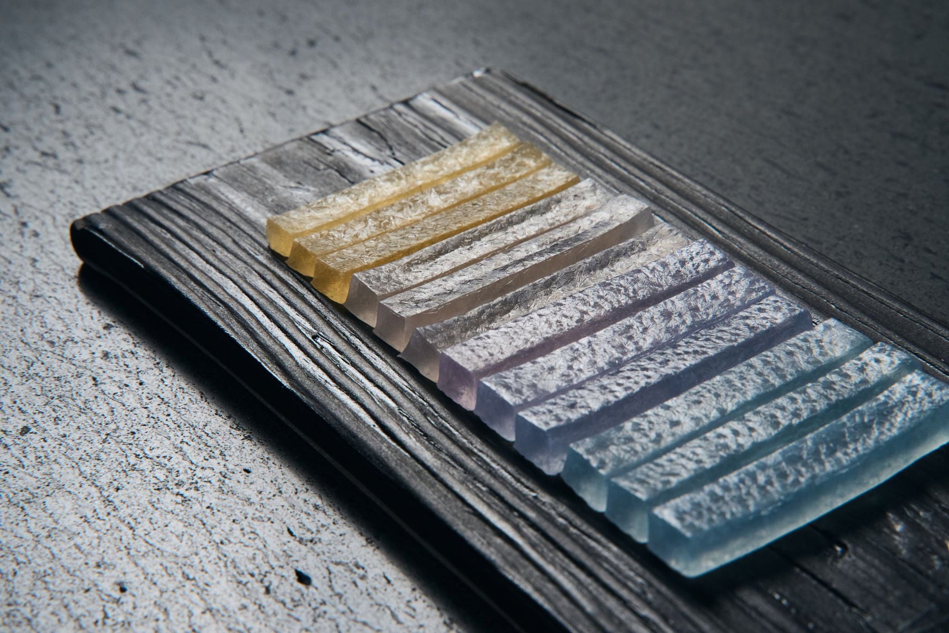 時間帯によって移り変わる空模様を、砂糖と寒天を原料にした日本の伝統的和菓子、「琥珀糖」で表現しました。